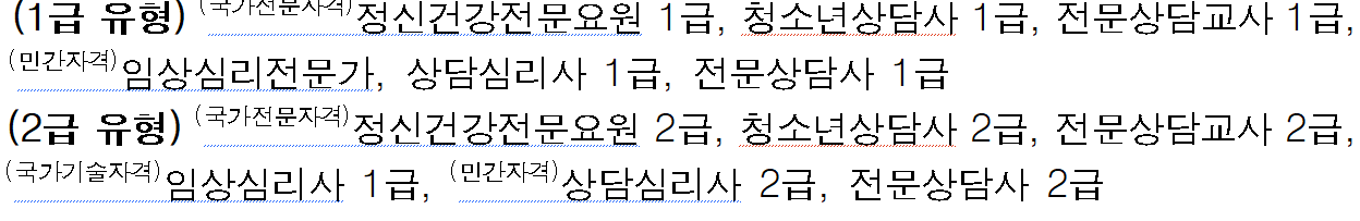1) 정신건강복지센터, 대학교 상담센터, 정신의료기관 등에서 심리상담이 필요하다고 인정된 자