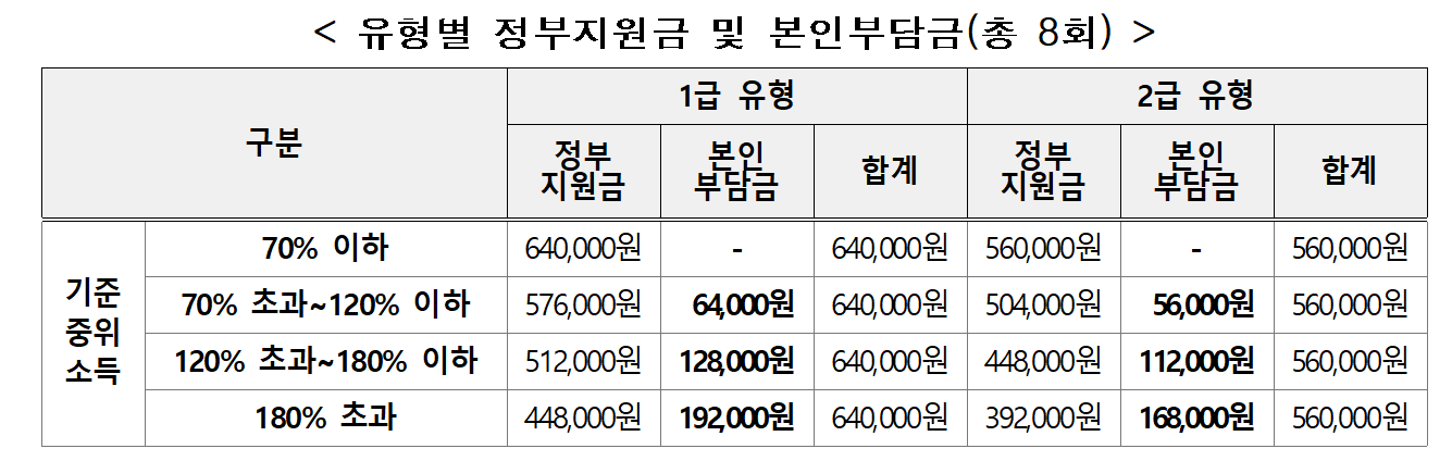 본인부담금은 0~30% 범위에서 소득에 따라 차등 적용됩니다.