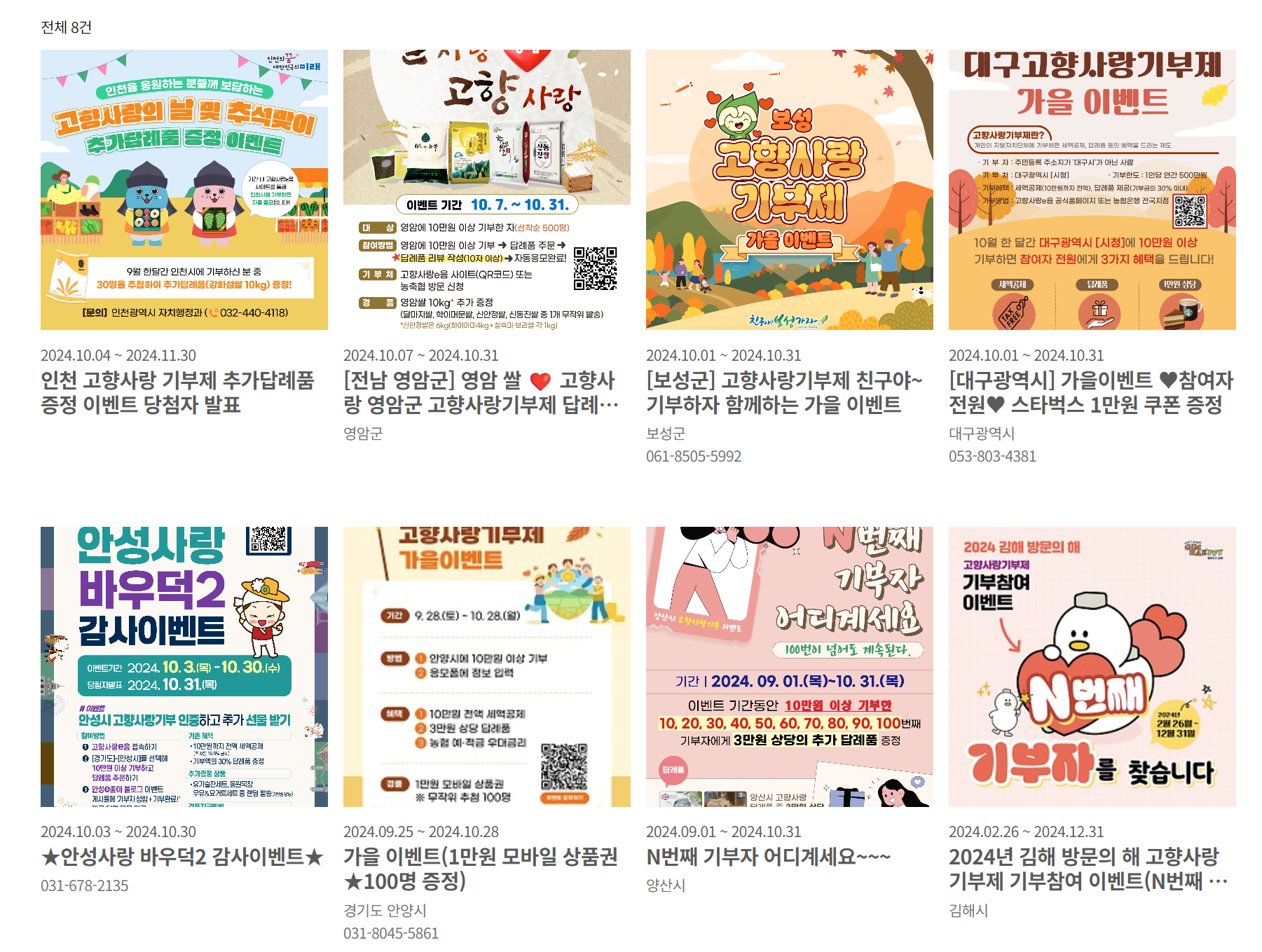 또한, 지역별로 특색있는 이벤트를 진행하기도 합니다. 내가 관심있는 지역이 이벤트를 진행하고 있다면 더 큰 혜택을 받아보실 수 있습니다.