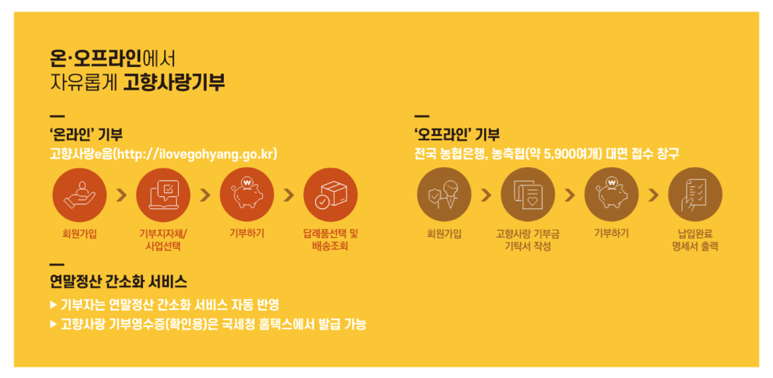 또한 오프라인으로는 농협이나 해당 지역의 지방자치단체를 방문해 기부 신청을 할 수 있습니다.