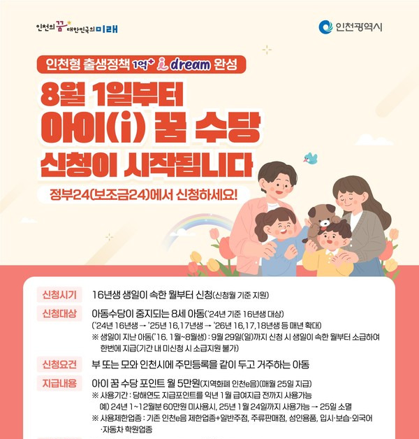 - 인천시 올해 8월 시행, 2016년생부터 8세부터 18세까지, 월 5,10,15만원(지역화폐)
