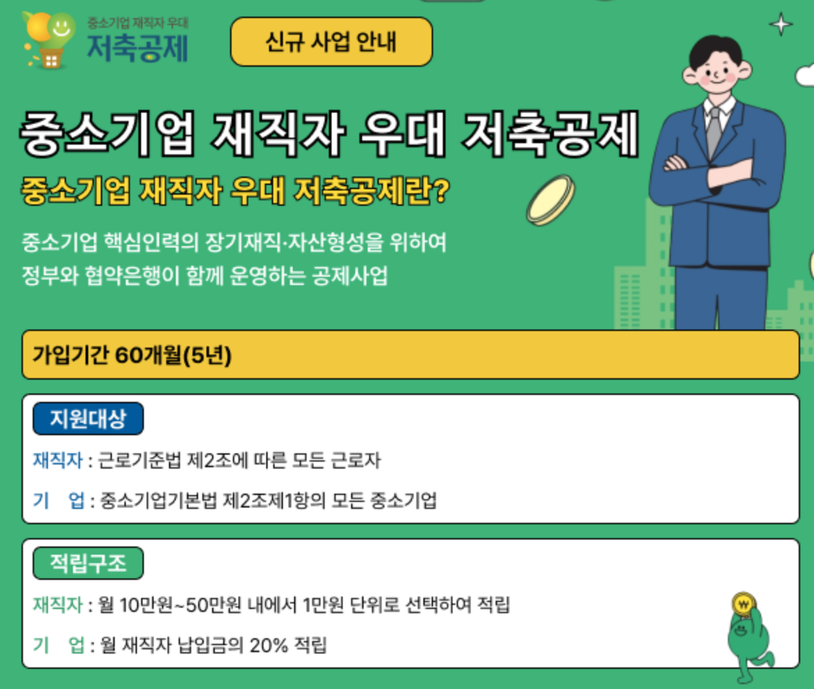 중소기업 재직자 우대 저축공제는 중소기업에서 근무하는 재직자가 안정적인 자산 형성을 돕고 장기 재직을 유도하기 위해 마련된 금융 상품입니다.
