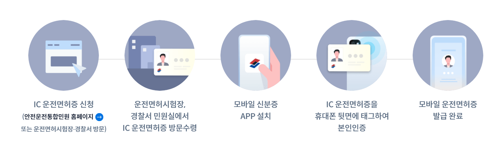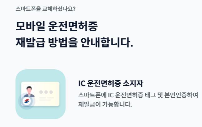 모바일 신분증 재발급 방법은 IC 운전면허증 소지자의 경우 스마트폰에 IC 운전면허증 캐그 및 본인인증하여 재발급이 가능합니다.