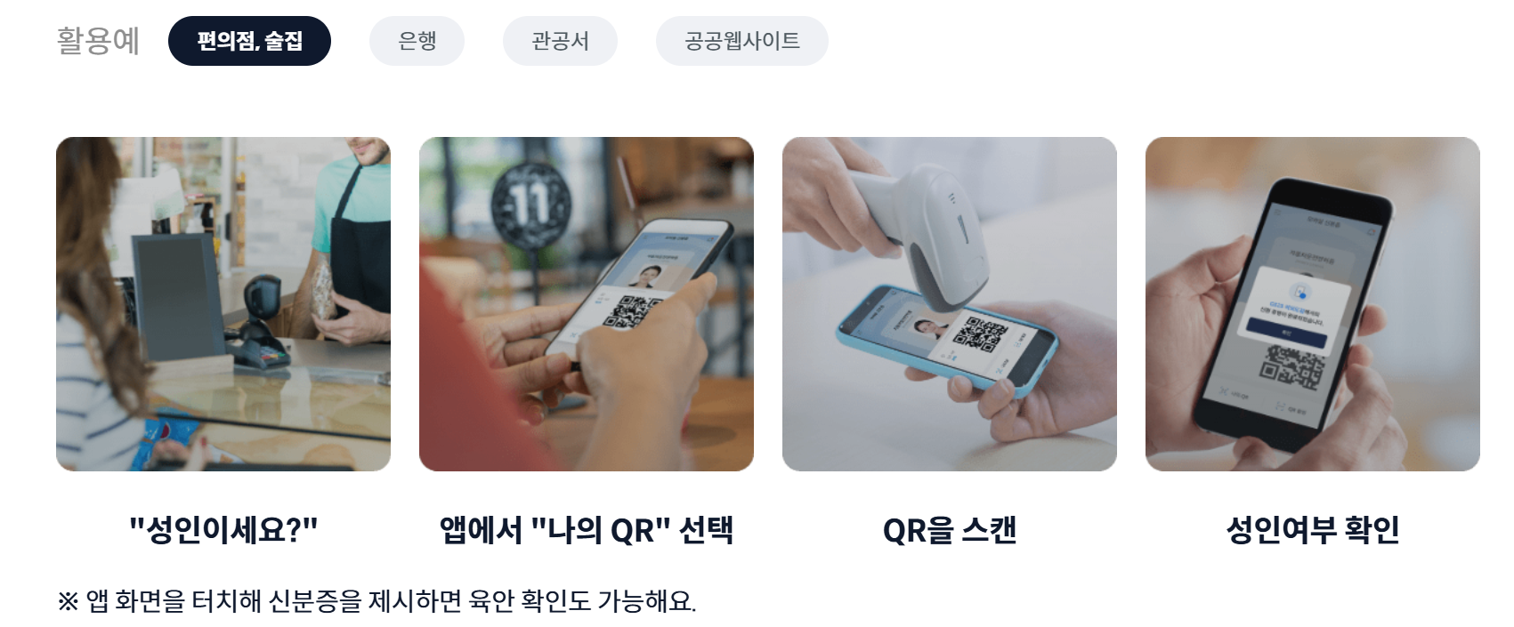 - 편의점, 무인자판기 등에서 성인확인 필요 시