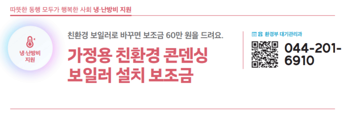 환경부의 가정용 친환경 보일러 지원금은 보일러 한 대당 최대 60만 원이 제공됩니다.