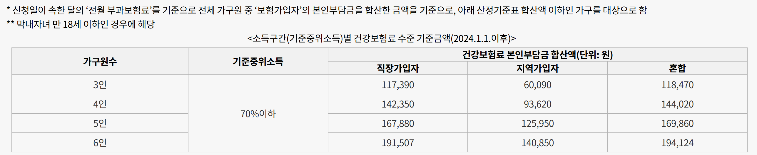 3) 다자녀가구: 기준 중위소득 70% 이하이며 만 18세 이하 자녀가 둘 이상인 가구