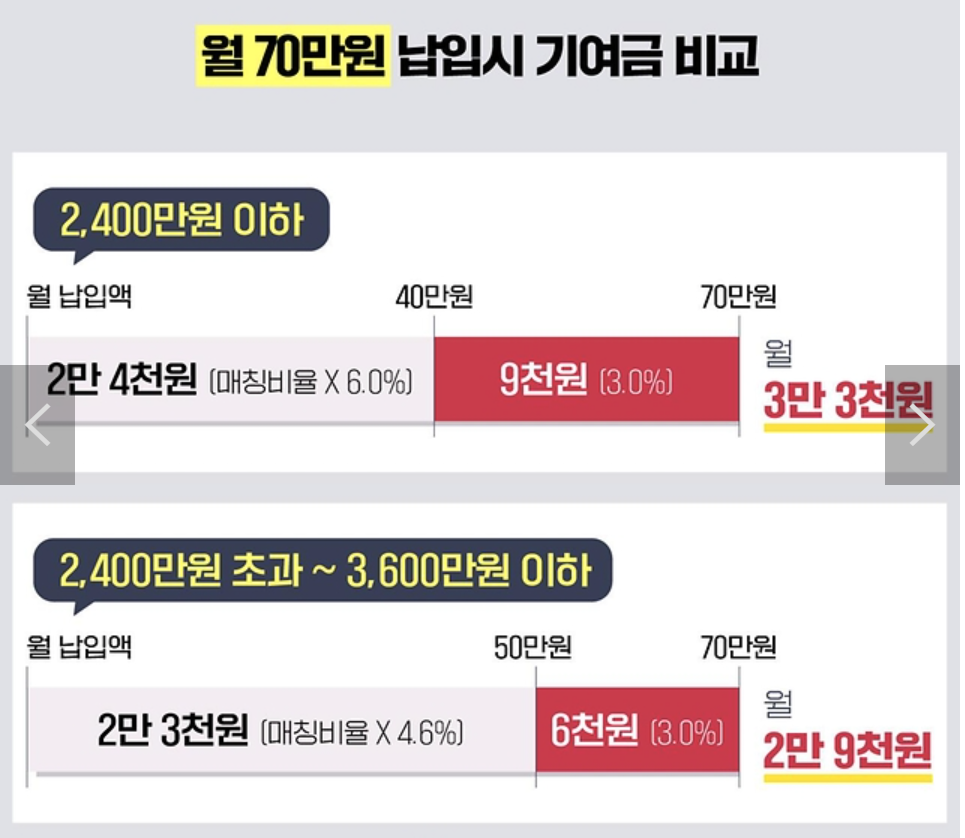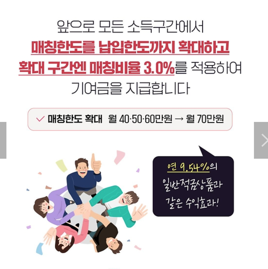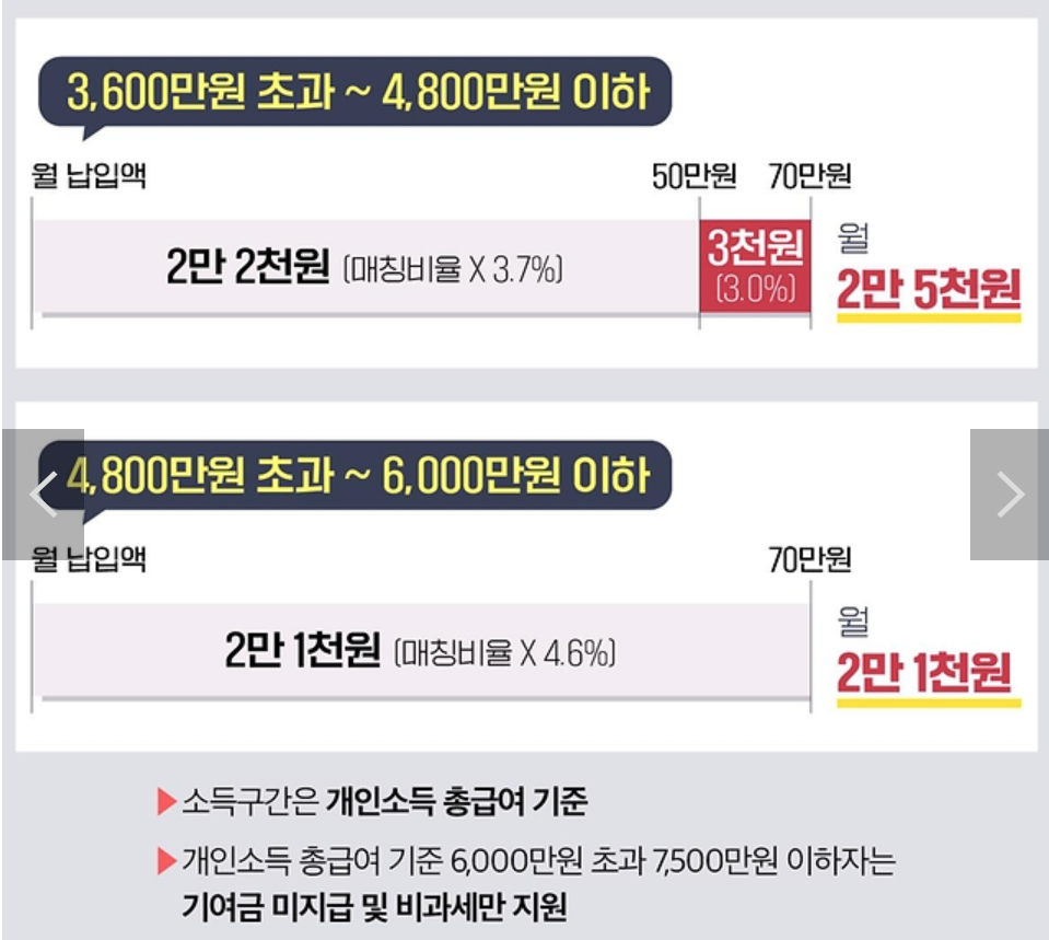 - 정부 지원금: 가입자의 납입 금액에 비례하여 최대 2배 지원
