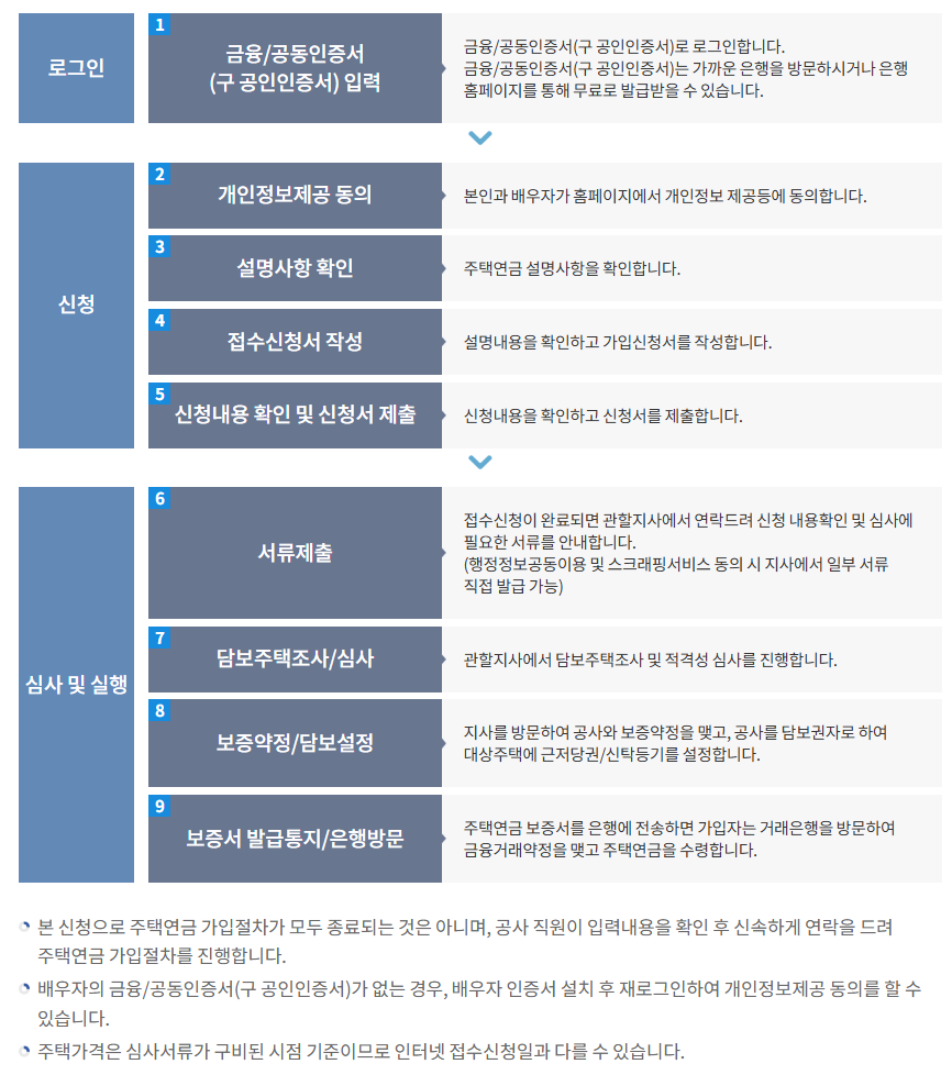 주택연금 인터넷신청 매뉴얼 주택연금 인터넷 가입신청 안내 인터넷으로 가입신청을 하시면 공사 직원이 연락을 드려 신청내용 확인 및 심사를 진행합니다. 주택연금 가입신청을 위해 공동인
