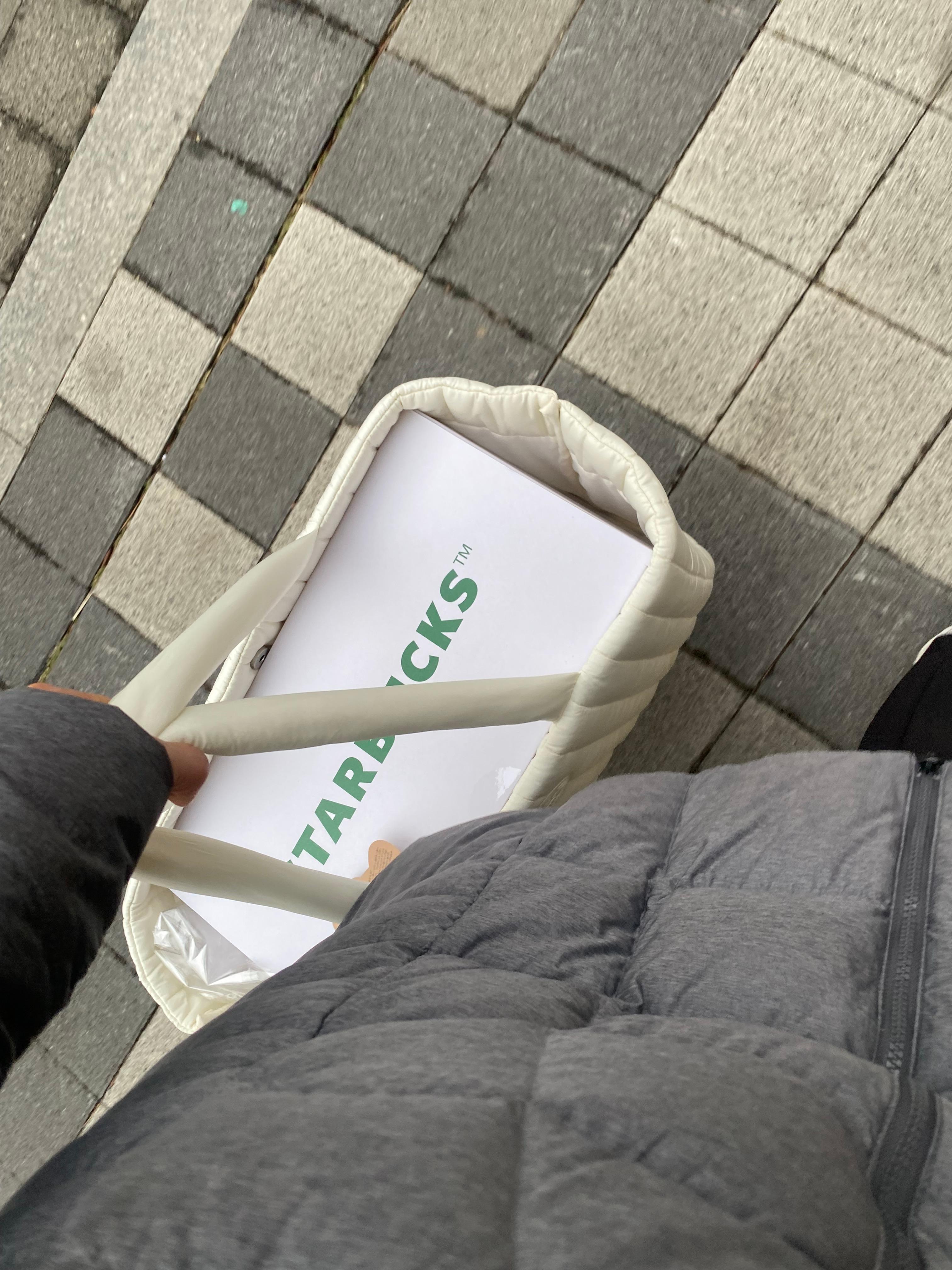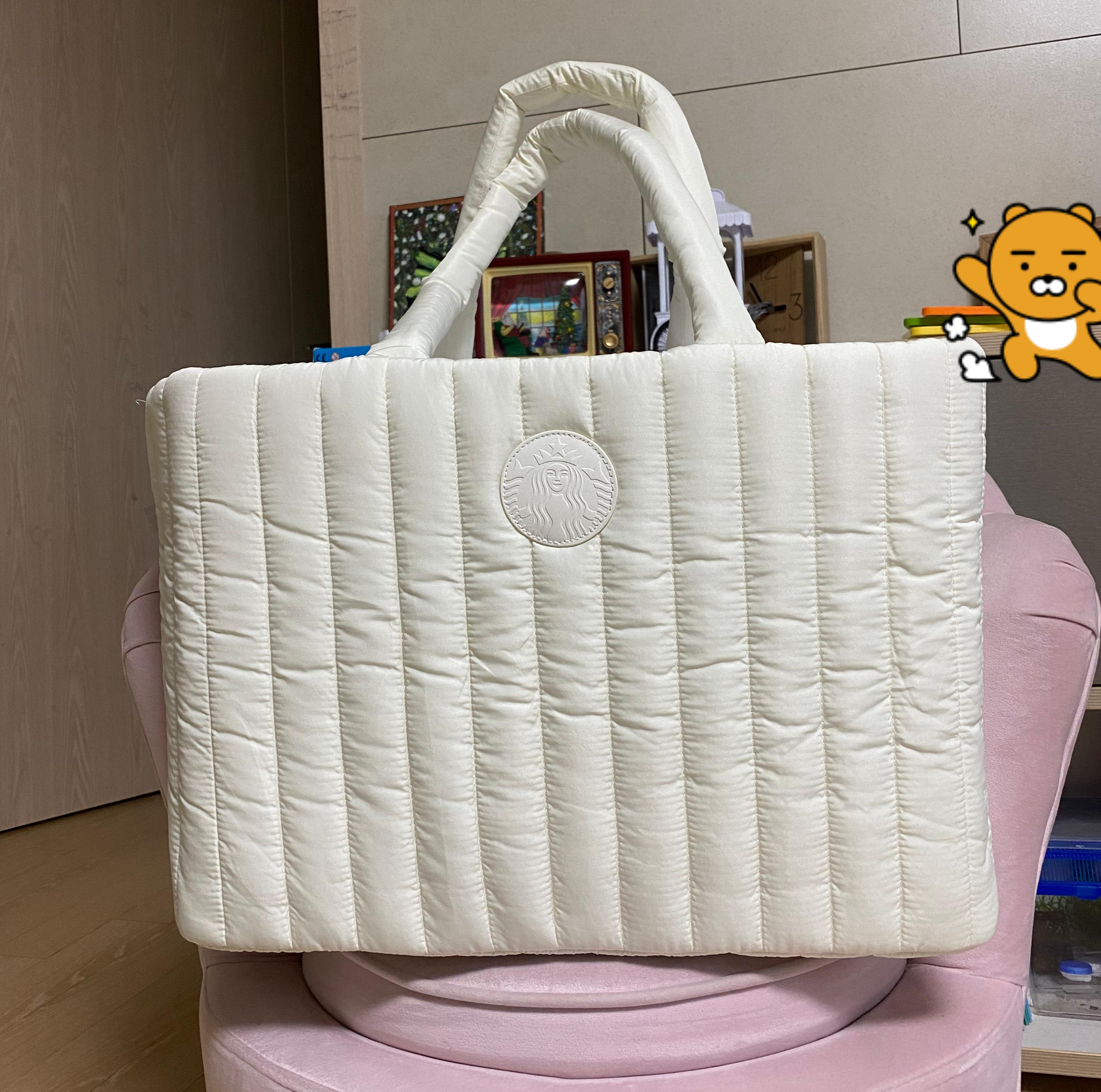 흰색 패딩 소재의 백도 무난하니 예쁘게 느껴진다.