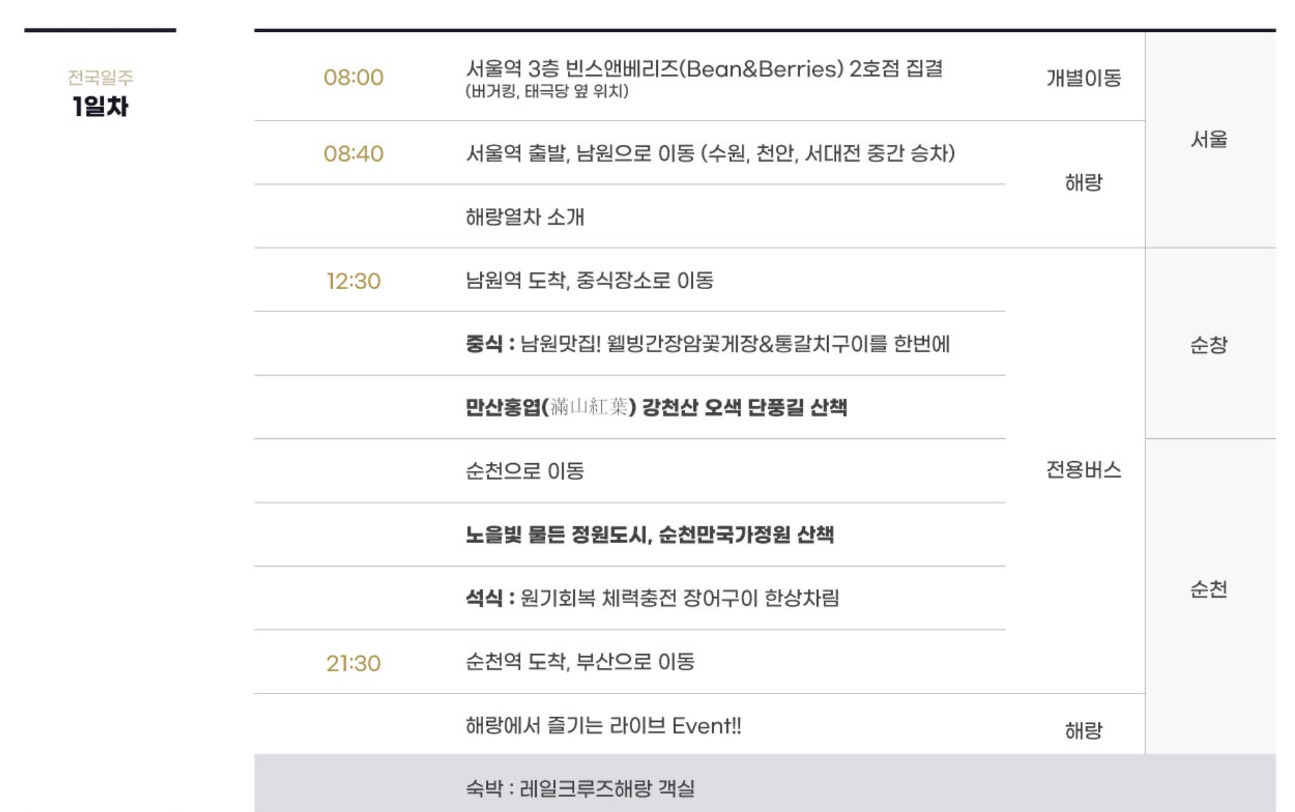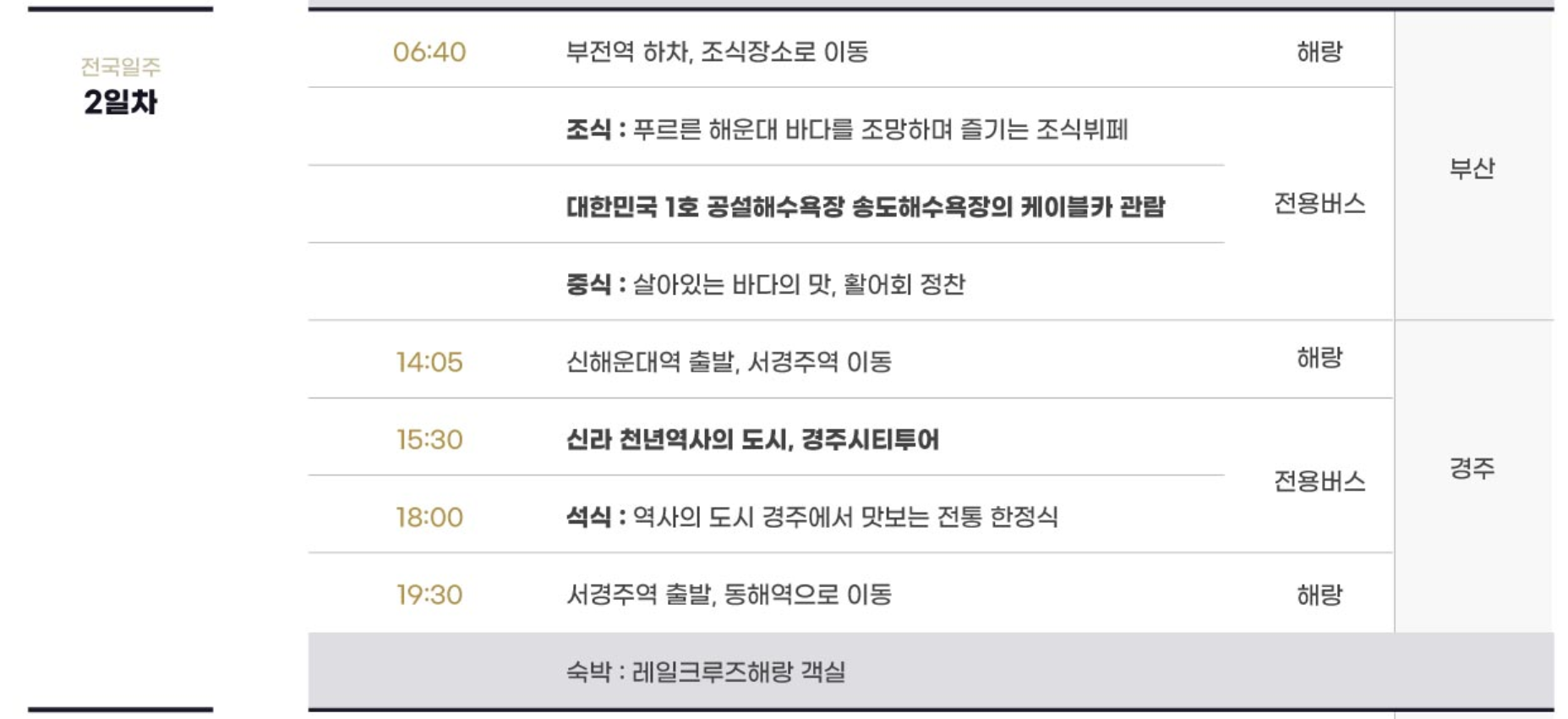1. 해랑열차 1박2일, 2박3일 코스 가격