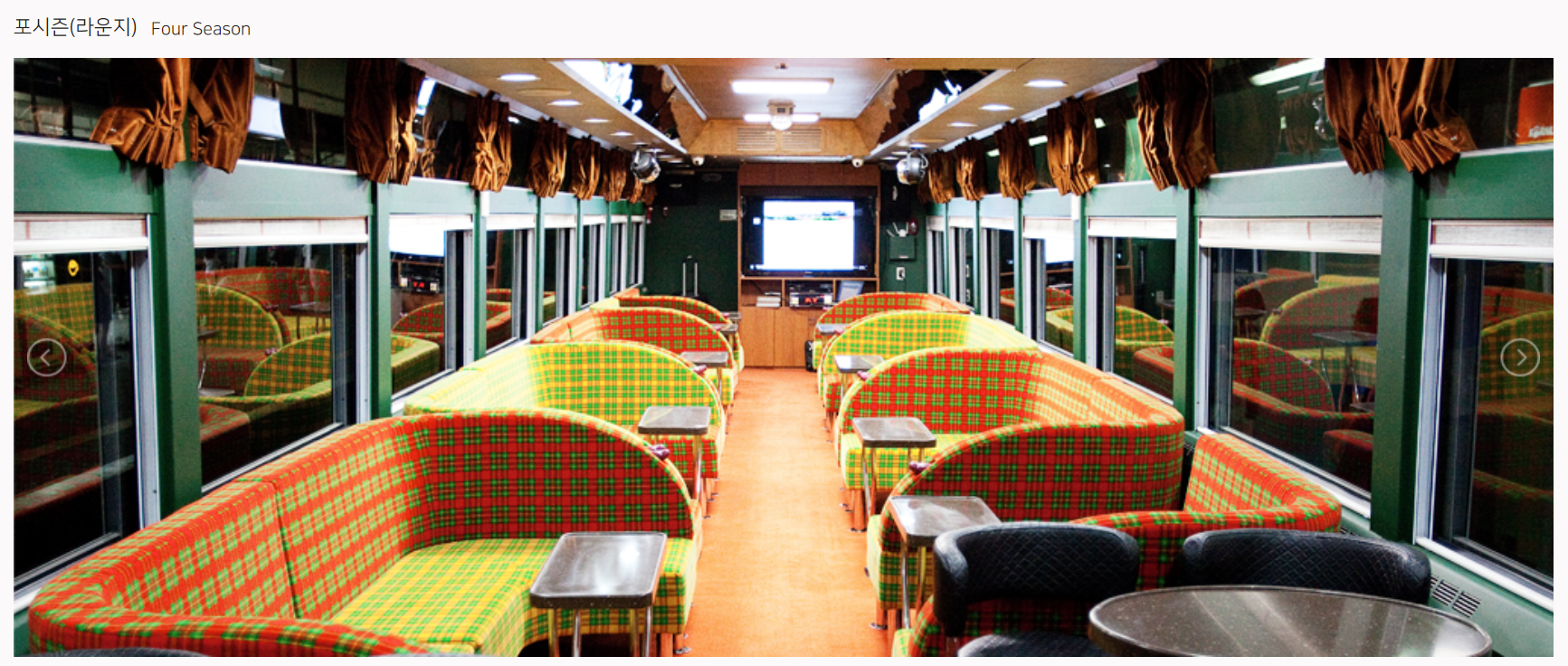 해랑기차에는 썬라이즈 식당칸과 포시즌 라운지가 있습니다.